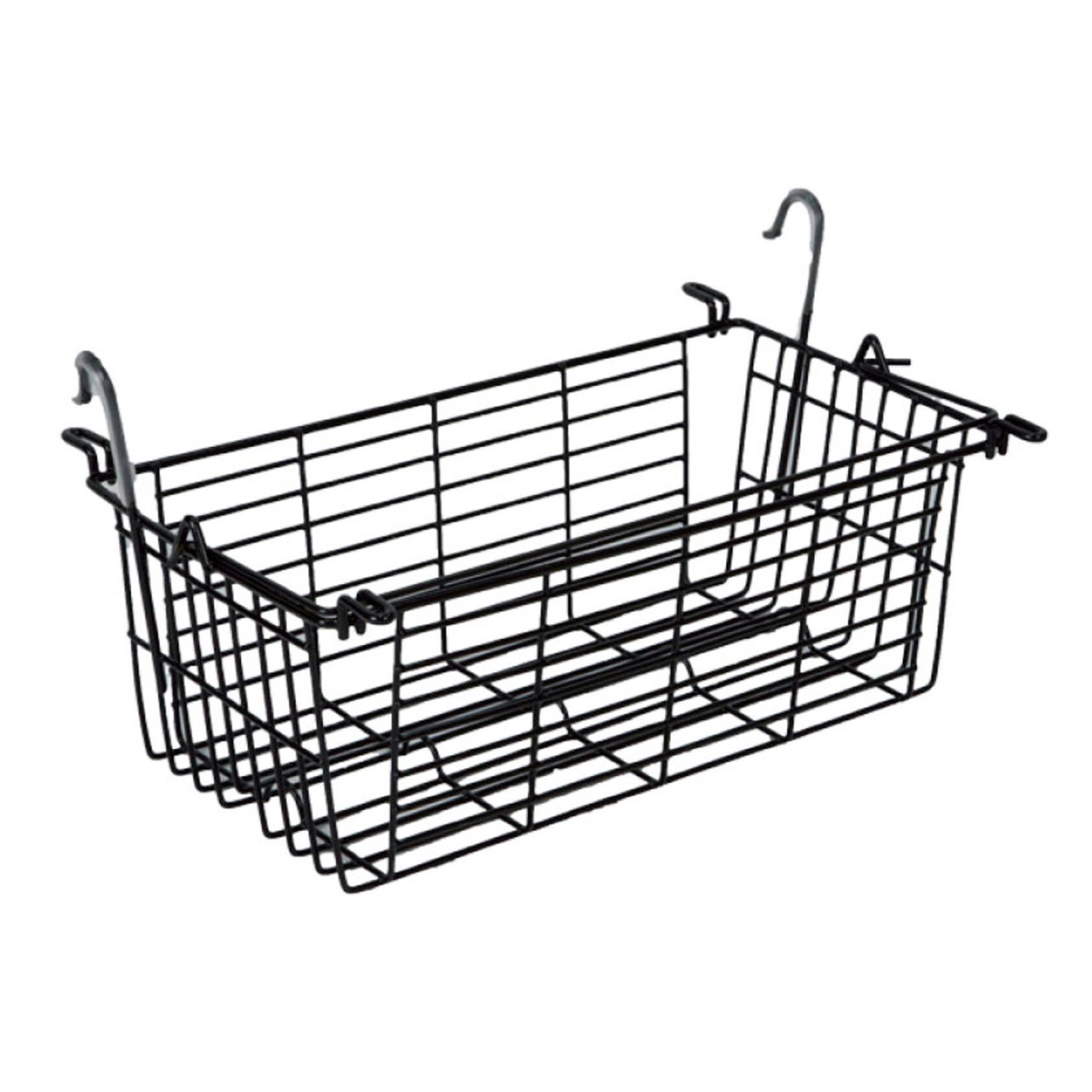 Sedile in plastica con vassoio rimovibile, cestino porta-oggetti e porta bastone di serie.