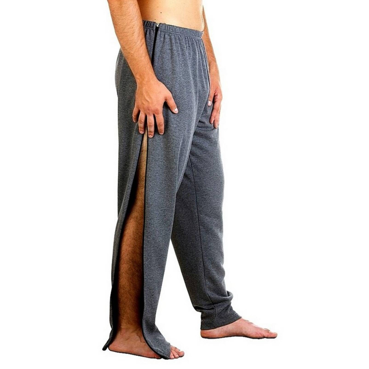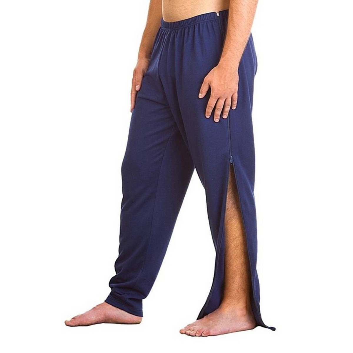 Il punto di forza dell'articolo 1024 è la doppia cerniera laterale (fianco destro e sinistro) che si estende dalla vita fino alle caviglie. Questa configurazione, interamente realizzata in Italia (Made in Italy), è funzionale per chi deve indossare ausili ortopedici come gessi, tutori o elementi di sostegno, poiché permette di aprire completamente il pantalone facilitando l'operato del Personale Sanitario e dei caregiver. È una soluzione che riduce sensibilmente l'impegno fisico durante i trattamenti di igiene personale o le sessioni di fisioterapia post-operatoria.