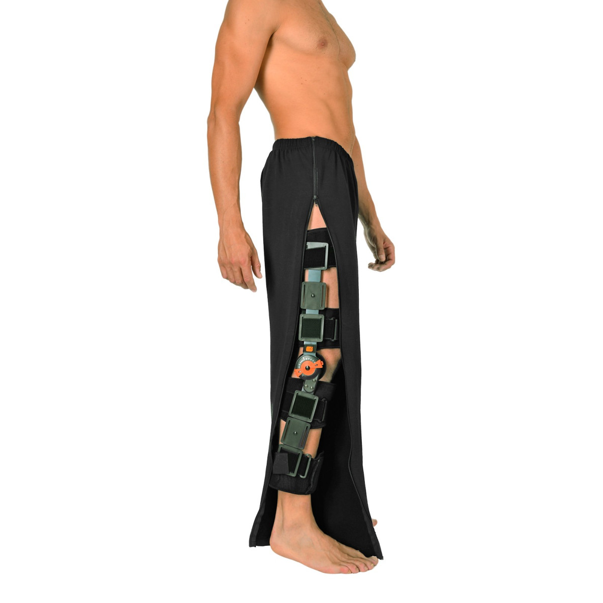 Grazie alla tripla apertura, questo pantalone facilita l'alloggiamento e la gestione di diversi presidi ortopedici per gli arti inferiori: