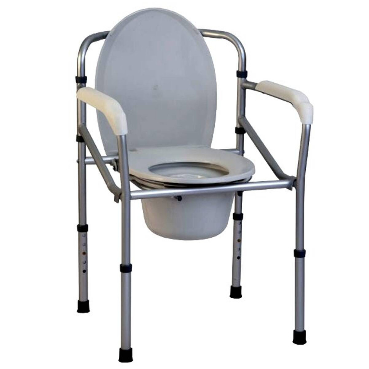 Grazie al sistema di chiusura rapida, questo modello può essere ripiegato in pochi istanti per il trasporto o per essere riposto con il minimo ingombro. È dotata di sedile regolabile in altezza (40-50 cm), braccioli ergonomici e puntali in gomma antiscivolo. Il secchio estraibile con coperchio e il convogliatore sono inclusi, assicurando massima igiene e praticità quotidiana per l'utente e per il caregiver.