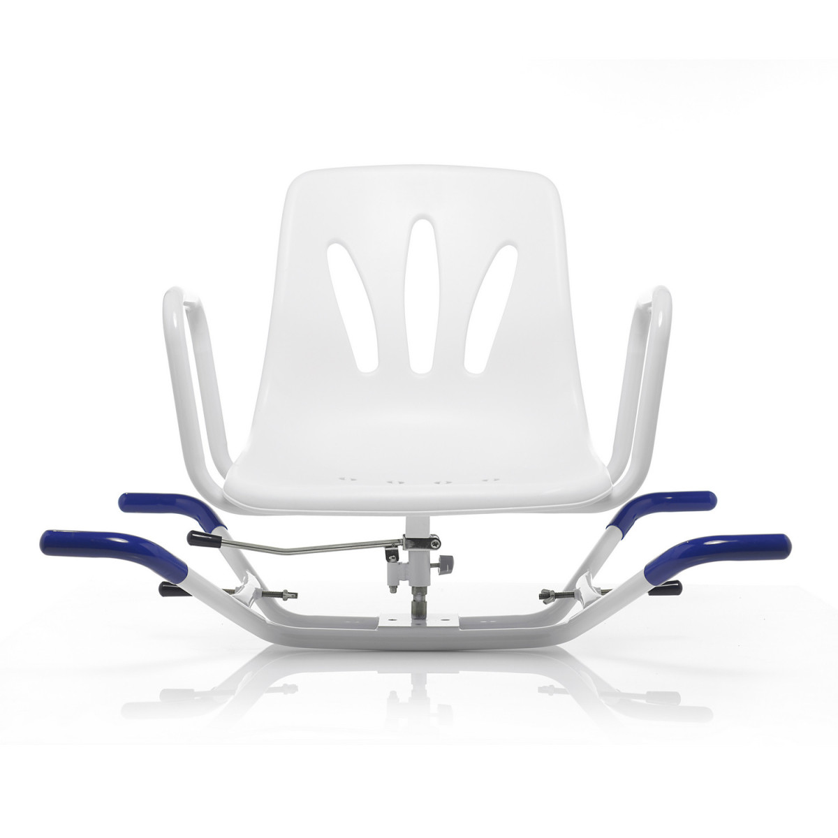Il sedile girevole per la vasca da bagno è un valido aiuto per chi ha difficoltà a compiere movimenti di entrata o uscita della vasca da bagno. Ha una struttura in acciaio inox con quattro punti di ancoraggio alle pareti della vasca da bagno. Il sedile è prodotto in PVC ed è munito di braccioli per garantire il massimo comfort e sicurezza. Una manopola posta sotto alla seduta permette di ruotare il sedile per poter entrare ed uscire dalla vasca con il minimo sforzo.