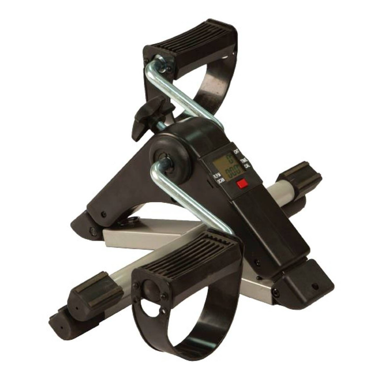 Il valore aggiunto di questo ausilio è il display integrato che fornisce indicazioni in tempo reale su: tempo di lavoro, calorie consumate, velocità e numero di pedalate effettuate. Realizzata in acciaio verniciato grigio, la struttura è dotata di piedini antiscivolo e manopola per regolare l'intensità dello sforzo. Il design intelligente permette di smontare e piegare l'attrezzo per trasportarlo facilmente o riporlo con il minimo ingombro.