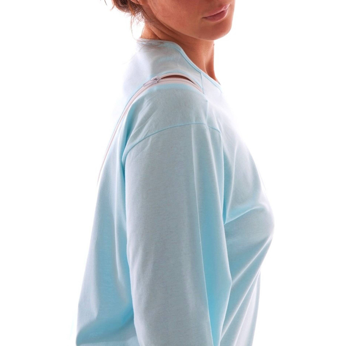 Questa soluzione è stata studiata per eliminare il potenziale fastidio del cursore posizionato al centro della schiena, garantendo una degenza più serena in presenza di patologie neurodegenerative come l'Alzheimer. La struttura del pigiama permette di posizionare la Paziente su un fianco e procedere alle operazioni di igiene o alla sostituzione dei presidi assorbenti senza dover svestire completamente il corpo. È un supporto fondamentale sia per l'assistenza a domicilio che in strutture specializzate come RSA e Case di Riposo.