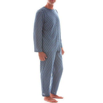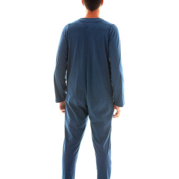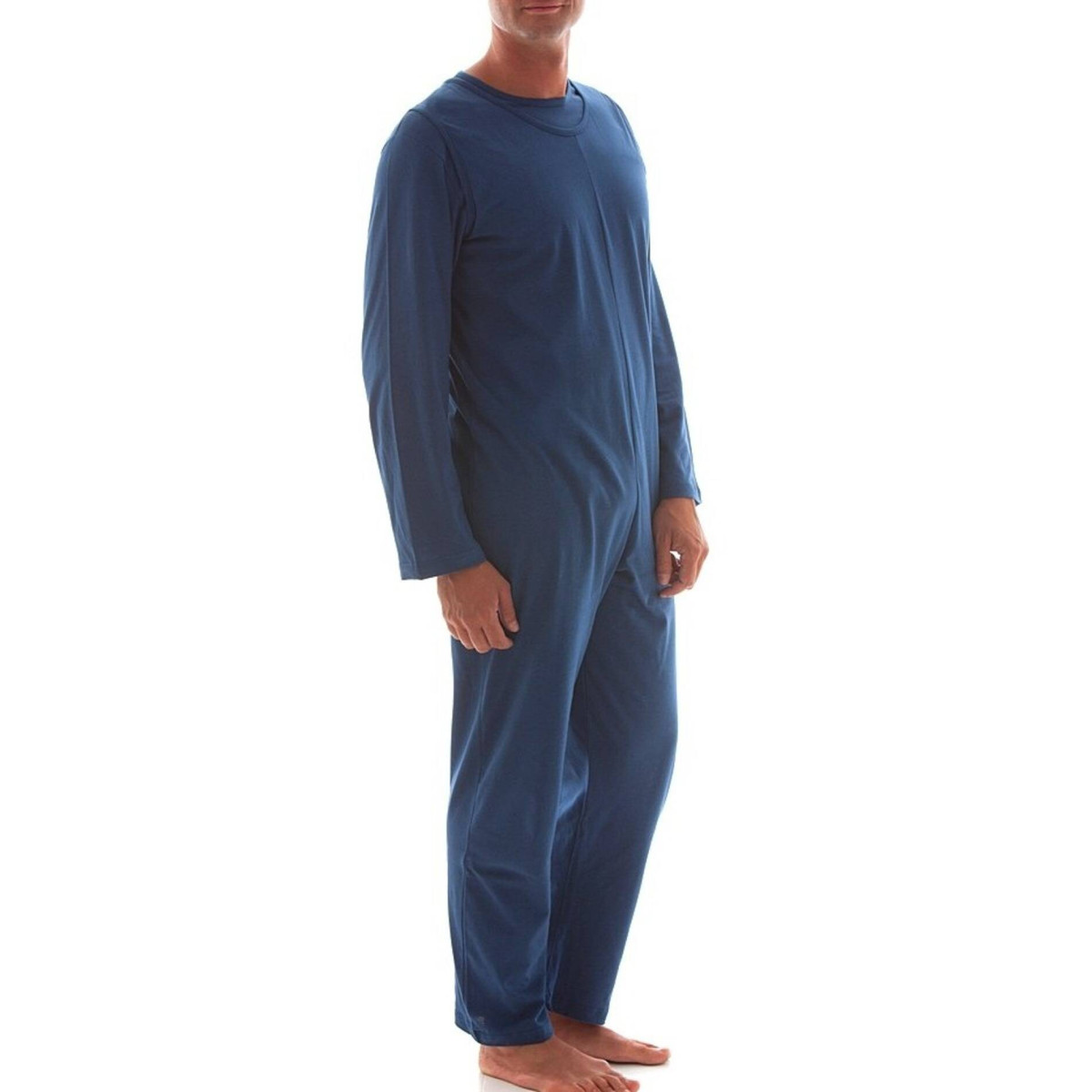 Il pigiamone sanitario per uomo in tessuto interlock di caldo cotone è la risposta di ParamedicalShop per la stagione invernale. Concepito come una tuta intera composta da maglia e salopette integrata, questo capo elimina totalmente l'uso di cerniere, privilegiando una chiusura a strappo che garantisce sicurezza e comfort termico alla Persona allettata o con mobilità ridotta.