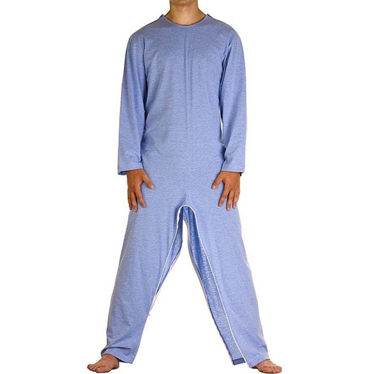 Il pigiama sanitario per uomo Art. 1007 è realizzato in morbido caldo cotone interlock, ideale per affrontare i periodi invernali. Questo modello è progettato con una cerniera nell'interno gambe che corre da caviglia a caviglia, facilitando enormemente l'accesso al pannolone. Tale soluzione è particolarmente indicata per la gestione di Persone con peso corporeo importante, riducendo l'impegno fisico del Caregiver durante le operazioni di igiene intima.
